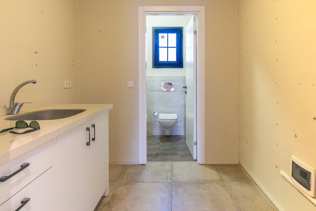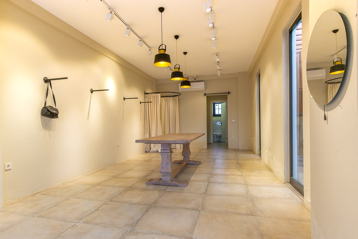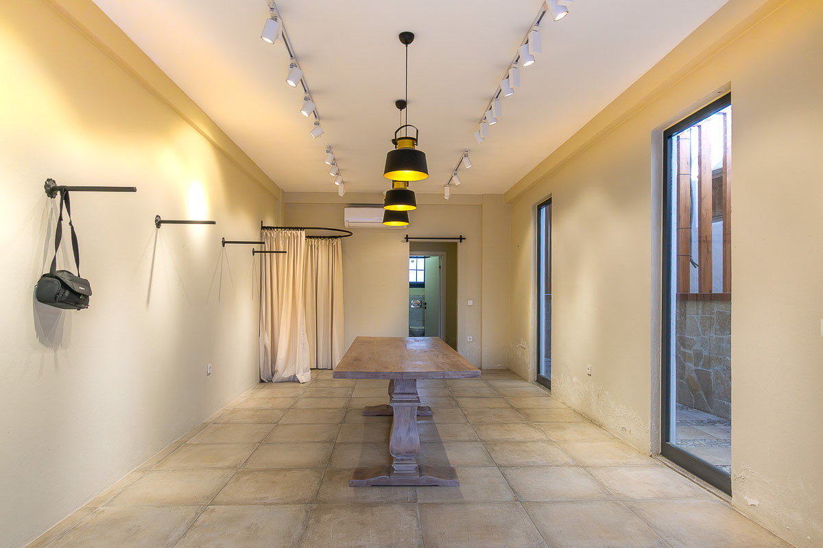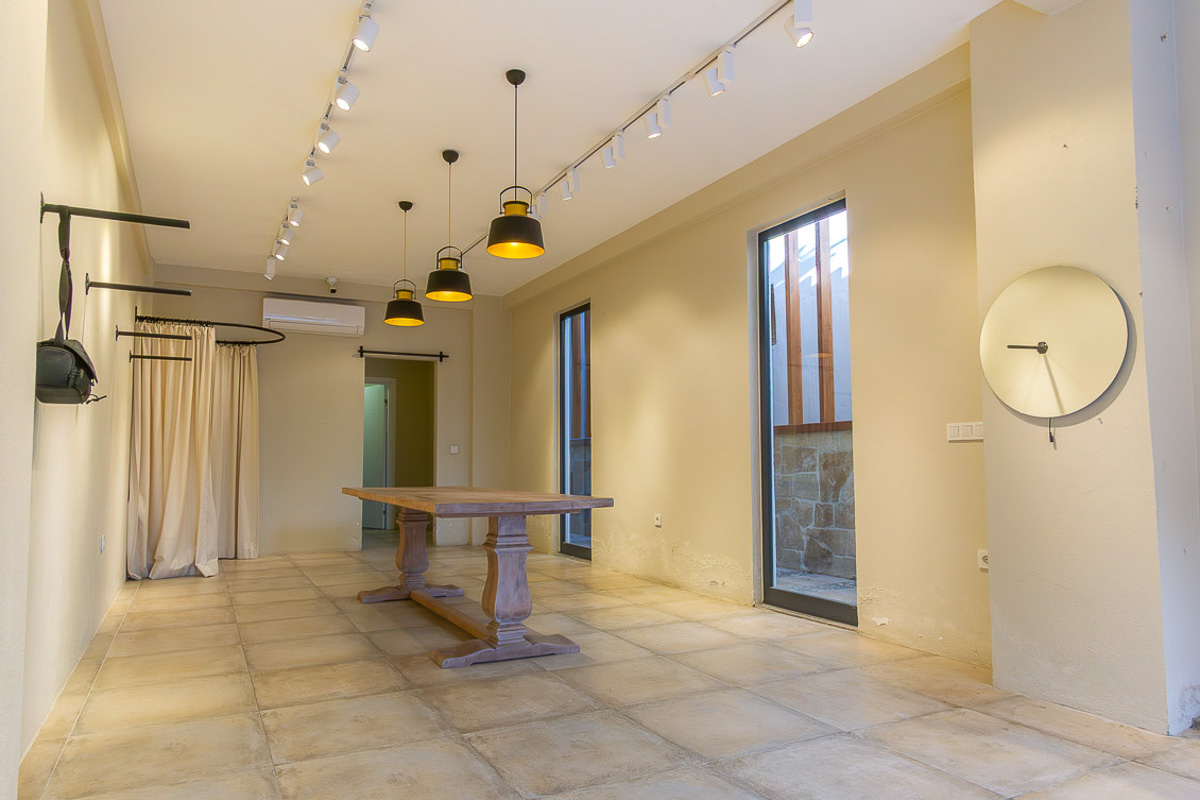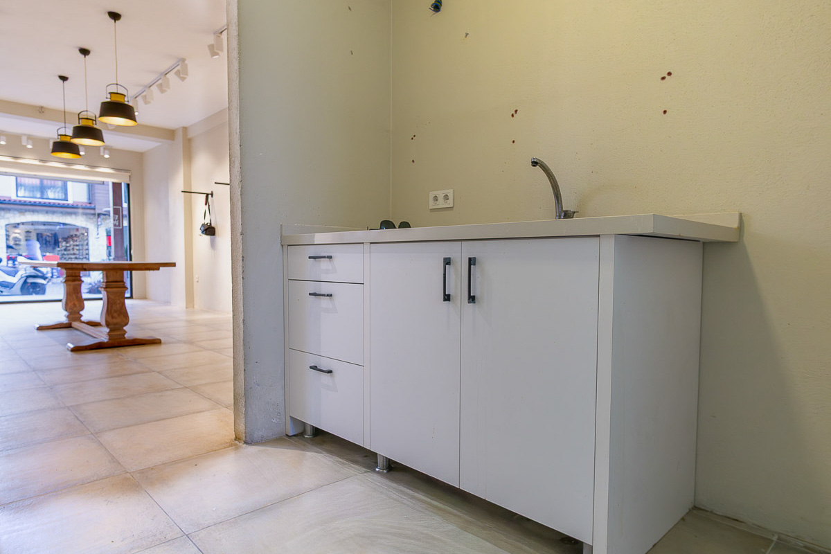 The shop provides 40 m² of interior space, including a 4 m² washbasin area with a toilet positioned behind it. At the entrance, the 7 m² veranda serves as an extended display or small seating area, making it suitable for various retail or service-based concepts. Inside, the linear floor plan, track lighting and full-height glass façade allow natural light to brighten the space and create a modern, welcoming commercial atmosphere. This design greatly enhances street visibility, making the shop easy to notice even from afar.