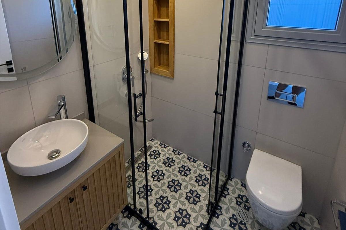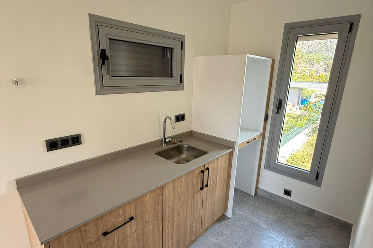 The kitchen features brand-new built-in appliances and all white goods. All furniture and fixtures are brand new, unused, and carefully selected. The property has underfloor heating powered by a heat pump, and air-conditioning is installed in all rooms, ensuring year-round comfort.