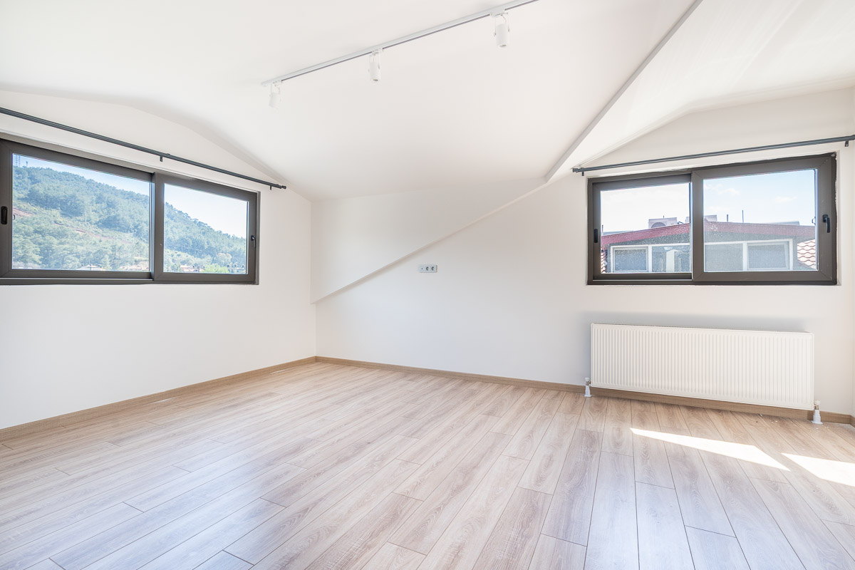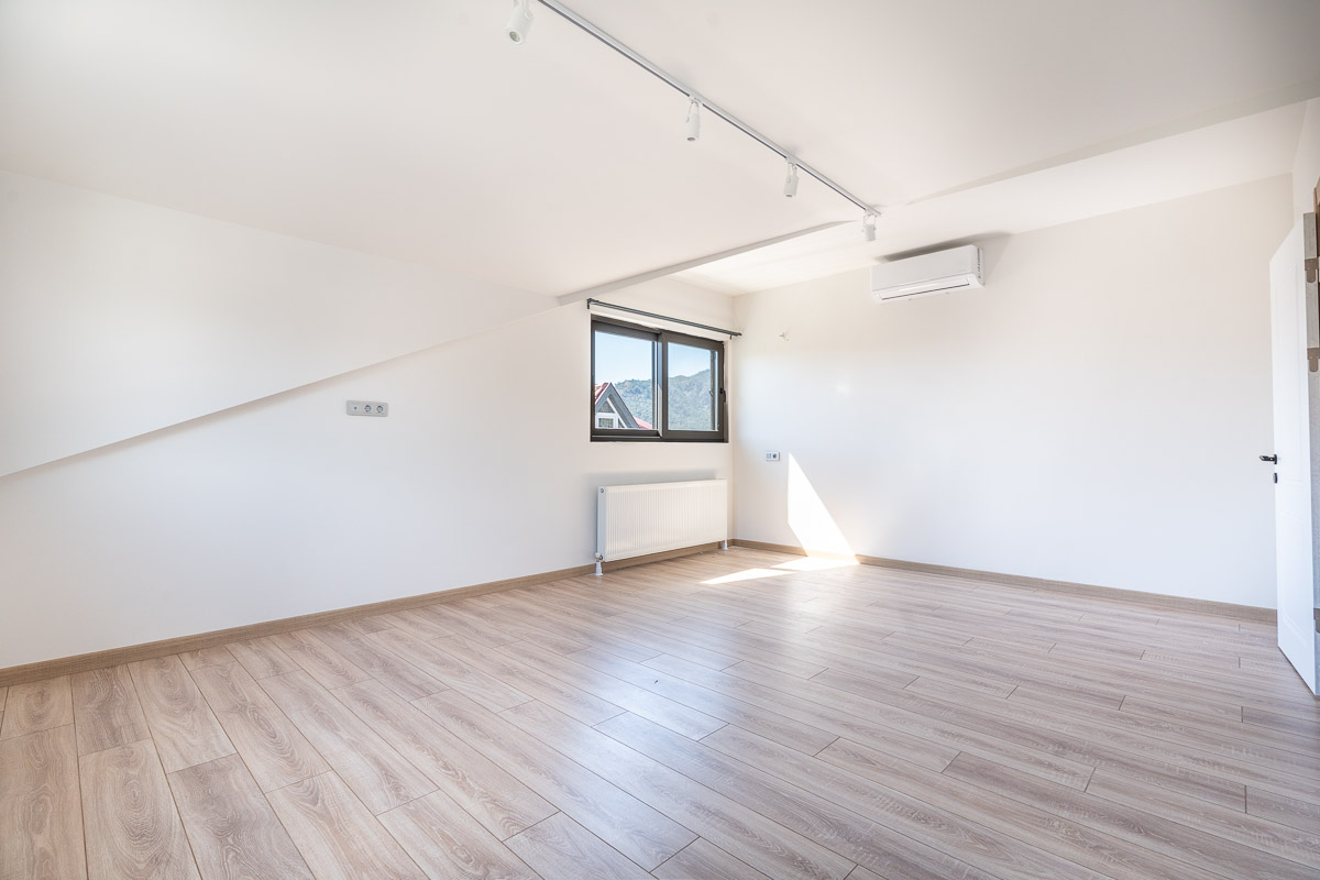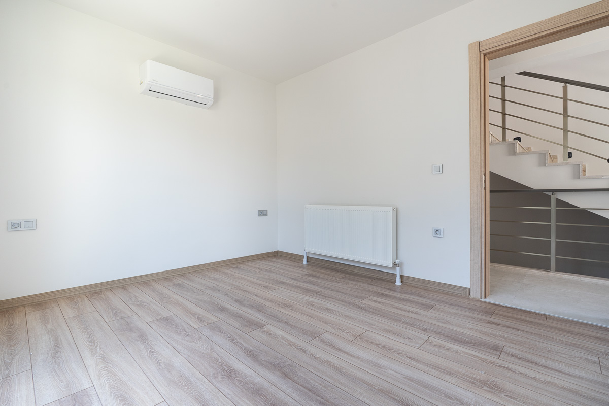 The villa is equipped with air conditioning in every room, supported by a heat pump infrastructure and radiator system, ensuring comfortable living throughout the year. High-quality materials, strong sound insulation, and thoughtful planning details reflect a well-built and carefully designed home. Being completely unused, the property is ready for immediate move-in.