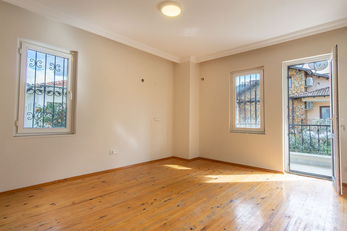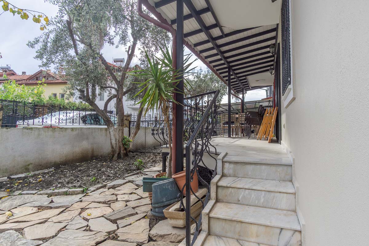 Located just a 1-minute short walk from Gocek market and marinas, this rental home promises both easy access to social amenities and an isolated lifestyle. Although designed in twin villa form, it gives the feeling of a detached house thanks to its completely independent entrances. A shared garden surrounded by orange and various fruit trees welcomes you. It is a balanced option for those who want to walk to the market during the day and relax in a quiet environment in the evenings.
