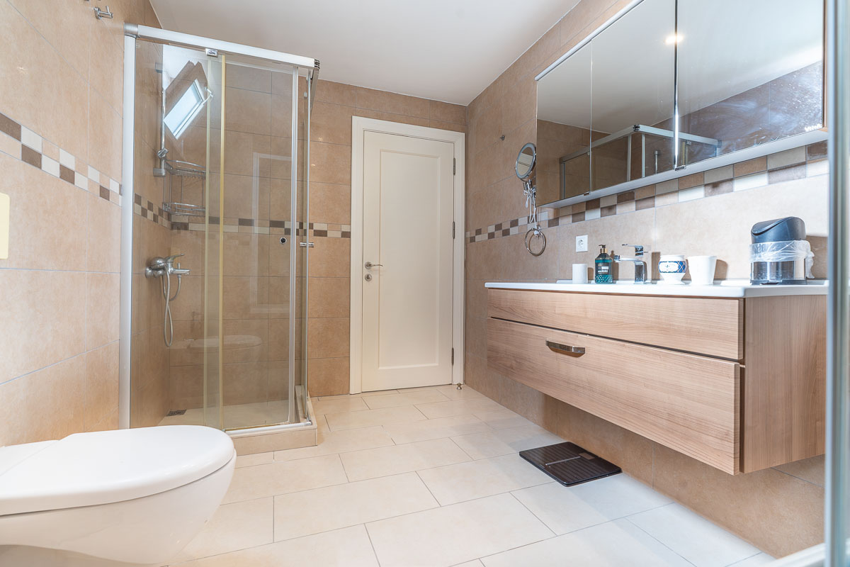Located in the heart of the town center, just a 5-minute walk from D-Marin and the promenade, this house currently for sale in Gocek stands out as one of the rare options in the region due to its central location and spacious living areas.