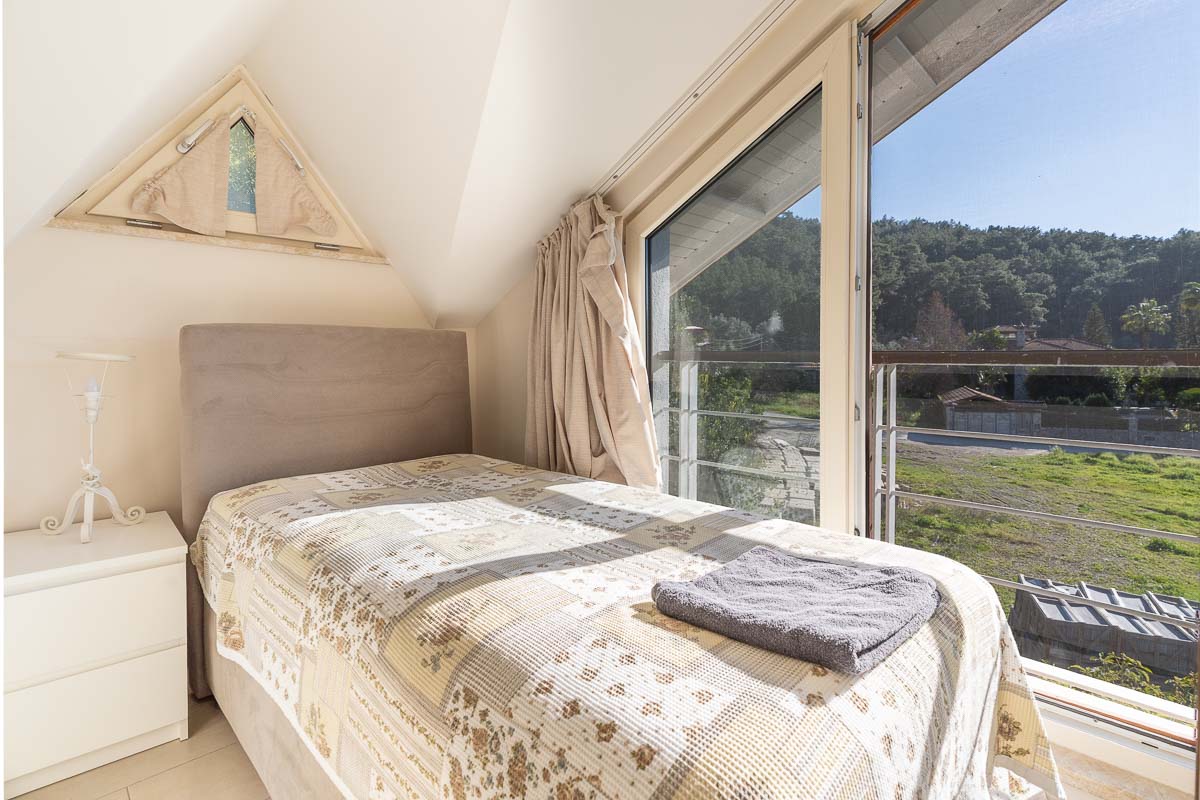 Entrance Floor (Living Area): This floor features a bright and airy living room, an open-plan kitchen, and a guest toilet. One of the greatest advantages of the home is the en-suite bedroom located on this floor, allowing elderly family members or guests to live comfortably without needing to use stairs. The large balcony directly faces the pool, offering a peaceful forest backdrop.