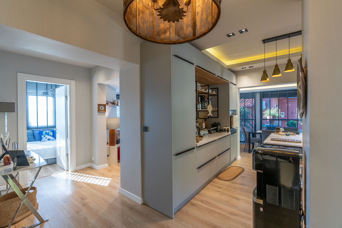 Fully renovated approximately three years ago, the property is offering a bright, comfortable and functional layout. The entrance level features a spacious living area filled with natural light and a beautifully updated kitchen. On this floor, you will also find a large, airy bedroom with an en-suite bathroom positioned right beside the living room. A second bedroom is located on the same level, opening directly to the garden through its private door and complemented by a covered veranda.