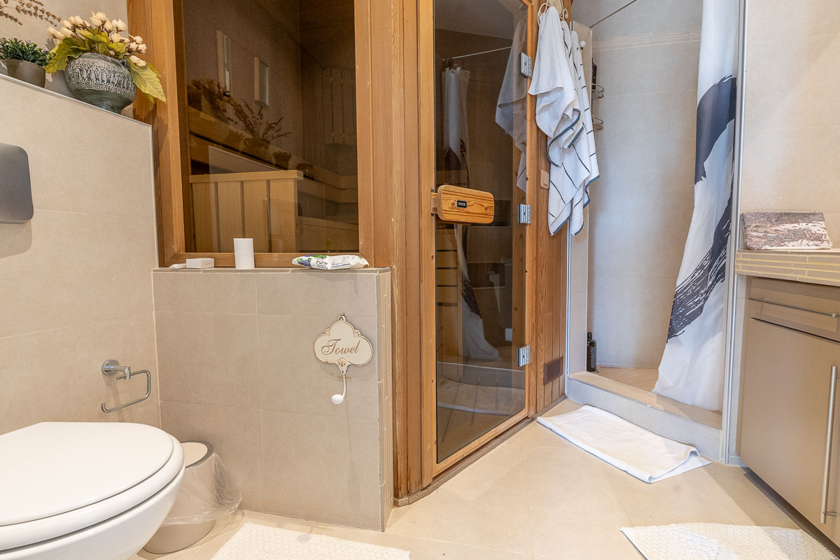 Heating is supported by a heat-pump and radiator system, and every room is equipped with air conditioning, making the villa suitable for year-round living.