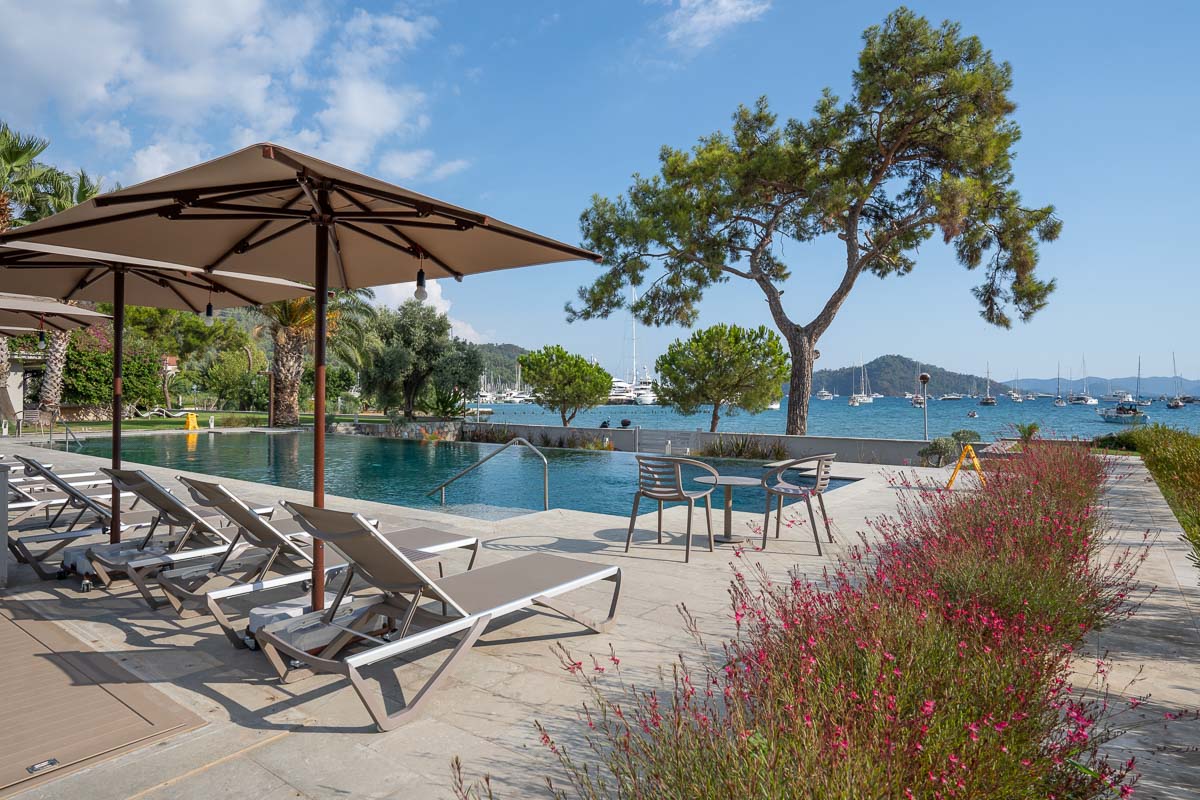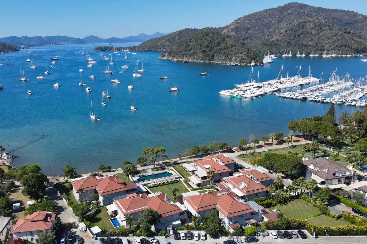 Located between Skopea Marina and Marine Türk Göcek Port, the Safir Residences stand out as one of Göcek’s most exclusive and sought-after waterfront developments. This elegant complex offers a serene yet central lifestyle, where you can reach the marina, restaurants, cafes, and shops within just a few minutes’ walk — no car needed.